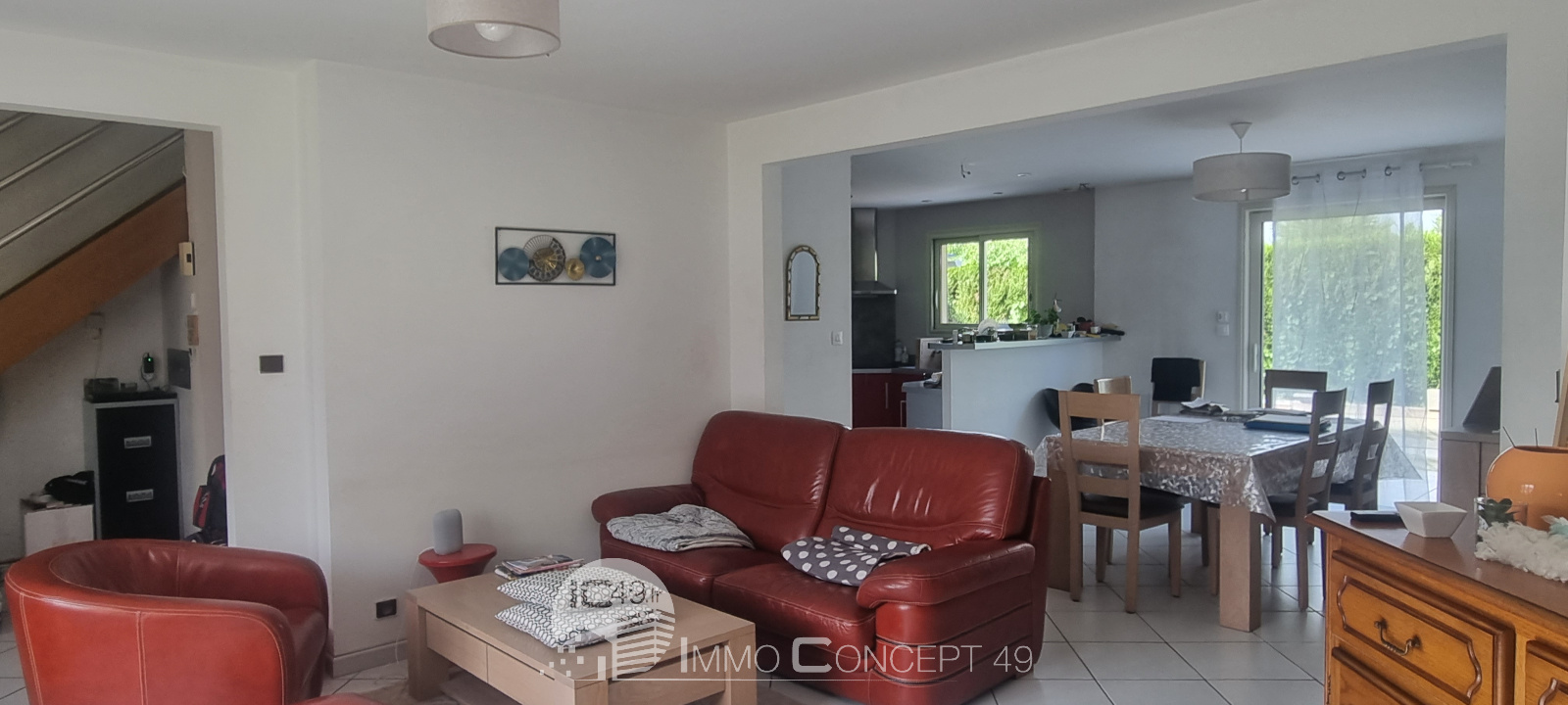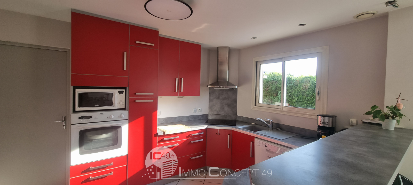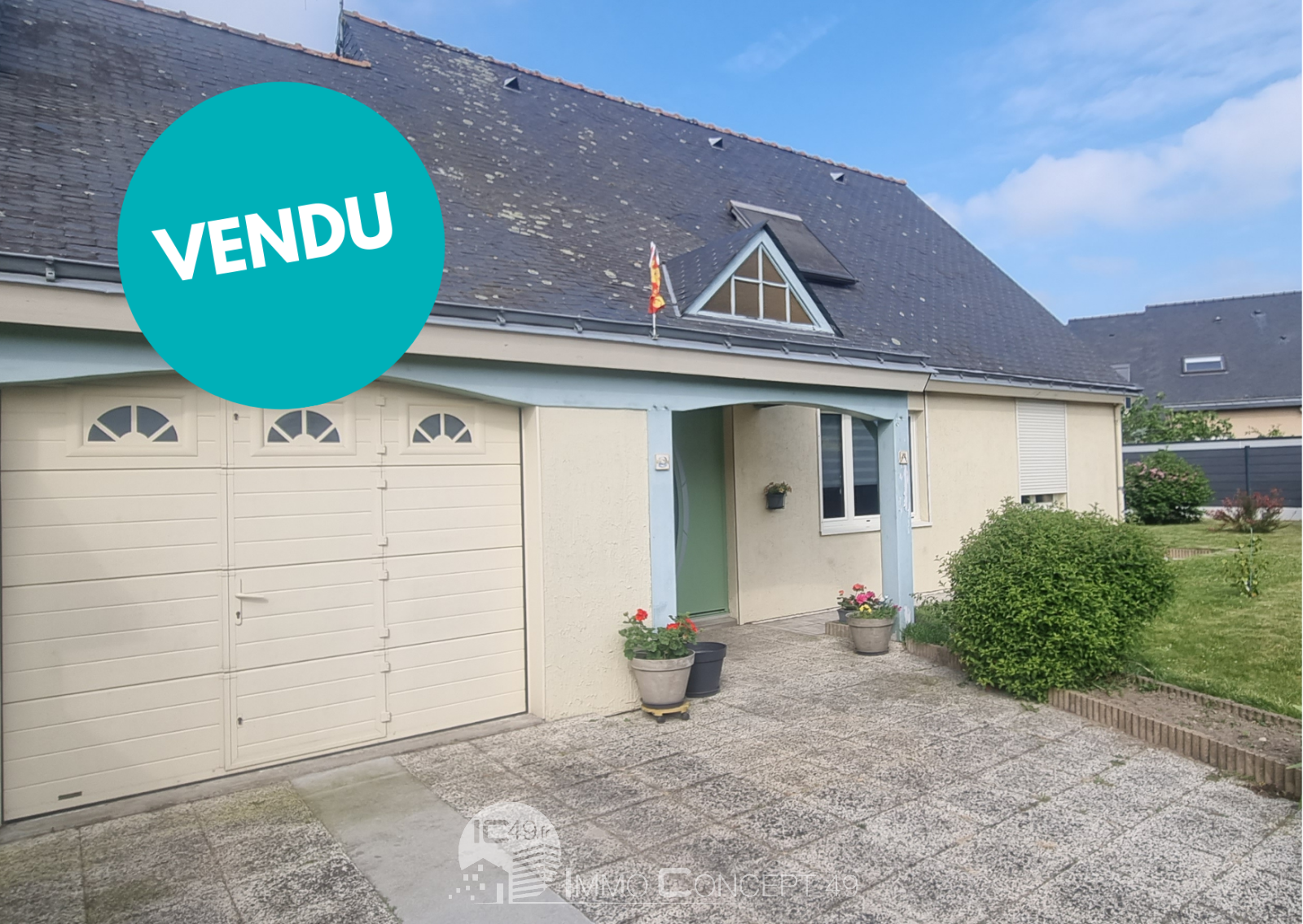 PROPRIETE SOUS COMPROMIS DE VENTE - Au cœur du village de SAINT-SYLVAIN-D'ANJOU, à proximité de toutes les commodités, jolie maison de 115m² habitables offrant une cuisine équipée ouverte sur un salon/séjour avec poêle à granulés, quatre chambres dont une au rez-de-chaussée, un dressing et deux salles de douche.