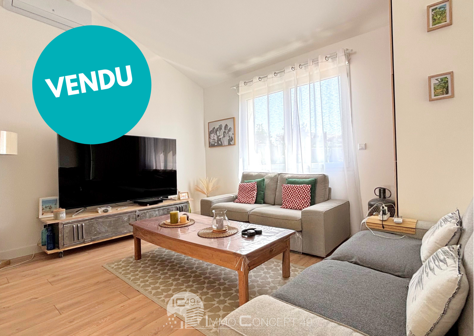JUIGNE SUR LOIRE - EXCLUSIVITE - A deux pas des commerces et services, posez vos valises dans cette jolie maison rénovée de plain-pied, comprenant une pièce de vie lumineuse avec cuisine ouverte aménagée-équipée donnant sur une spacieuse véranda, trois chambres, salle de douche, toilettes, buanderie. Débarras. Jardin clos.