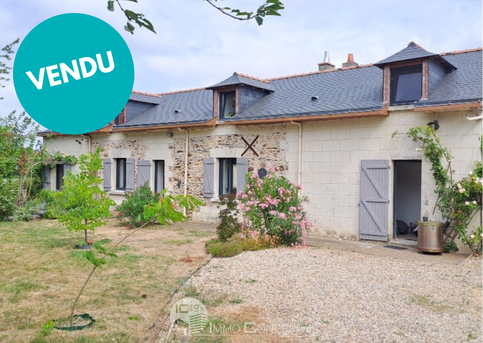 15 min Sud Angers. Venez poser vos valises dans cette belle longère d'environ 150m² offrant au rez-de-chaussée : une entrée avec placard, une lumineuse pièce de vie avec cheminée, grande cuisine A/E, une chambre, une salle de bain, toilettes. À l'étage : une grande mezzanine/ bureau, trois chambres, salle d'eau/WC, une pièce.