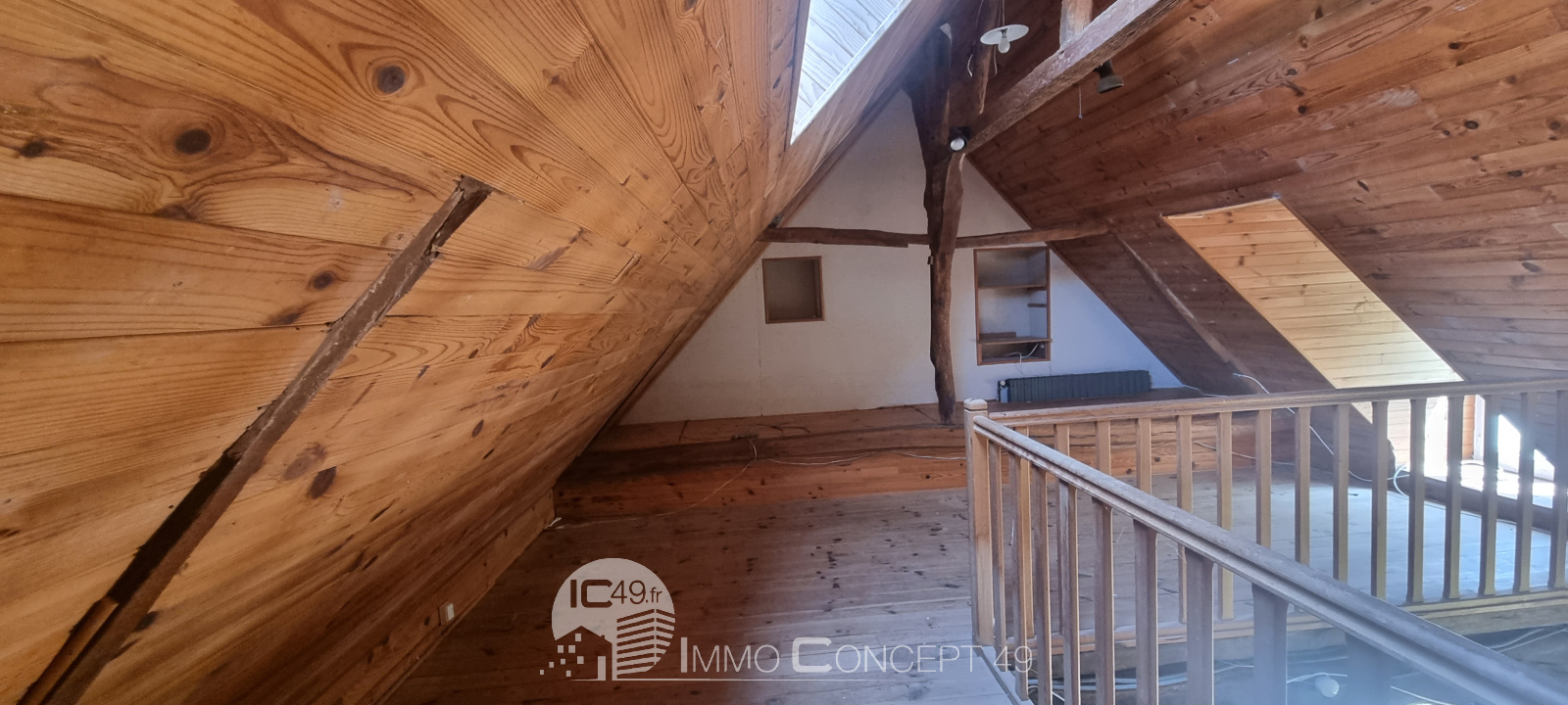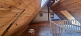 Une maisonnette en bon état sur 2 niveaux, composée d'une pièce principale avec kitchenette et poêle à bois, deux chambres, une salle de douche avec WC.