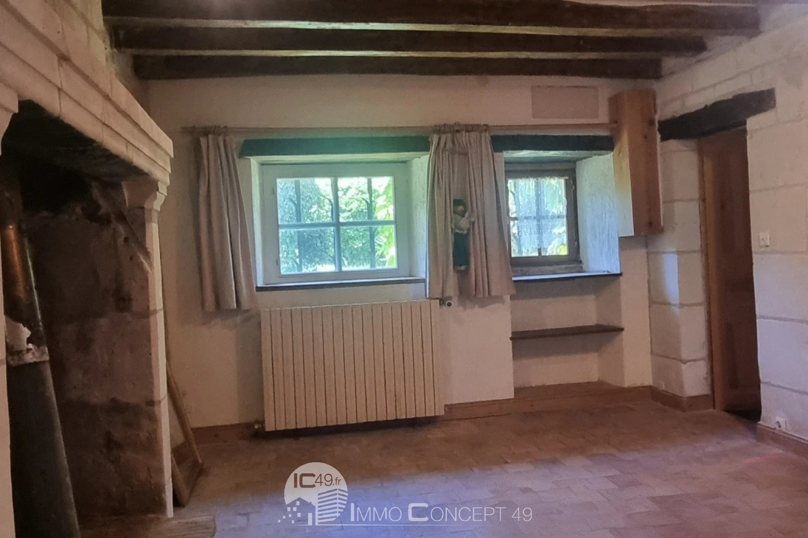 Une seconde maison avec une cuisine ouverte sur un séjour avec cheminée tuffeau, trois chambres, une mezzanine, une salle de douche et une buanderie. Travaux de rénovation à prévoir.